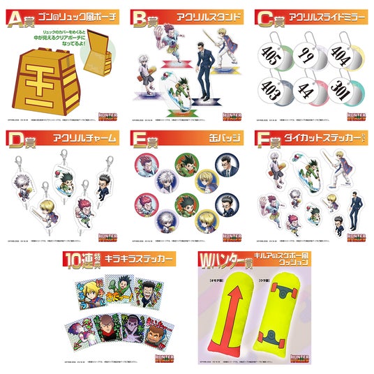今回のオンラインくじでは、大人気だったアプリゲーム「HUNTER×HUNTERアリーナバトル」で登場したイラストを用いた特製アクリルスタンドや缶バッジ、主人公ゴンの愛用するリュックをポーチで再現した「ゴンのリュック風ポーチ」など、ここでしか手に入らないアイテムをご用意しています。
