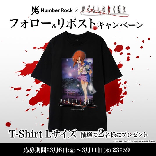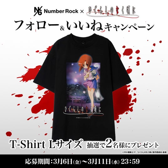 Number Rock(ナンバーロック)は、アニメ「ひぐらしのなく頃に」のスペシャルコレクションTシャツの発売決定を記念し、2026年3月6日(金)よりSNSプレゼントキャンペーンを開始いたしました。