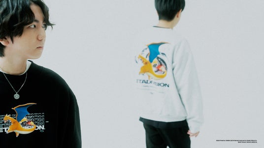 バトルフィールドで圧倒的な存在感を放つ「リザードン」と、スピーディーで相手を翻弄するスタイルで魅せる「エースバーン」にフォーカスしました。両ポケモンの躍動感を、チームデザインと融合したクールなグラフィックで表現。クルーネックスウェットとフーディーという、日々のワードローブに欠かせない、マストバイなアイテムに落とし込みました。