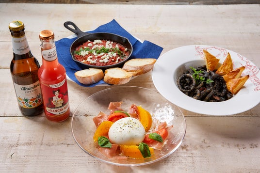 イタリアからは本場プーリア州のチーズブランド「ジョイエッラ」のブッラータを使ったサラダやたっぷり太陽を浴びて育ったブラッドオレンジドリンク、ギリシャからは伝統的なアペタイザー、スペインからはイカ墨を使った定番メニューや現地で長く愛され続けるビールなど、地中海を代表するにふさわしいメニューラインナップを揃えております。