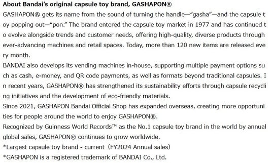 あわせて、プレミアムガシャポン(R)・フラットガシャポン(R)・90mmカプセルなど、独自の自販機だからこそ実現できる商品についても取り上げ、その魅力を詳しく紹介しています。