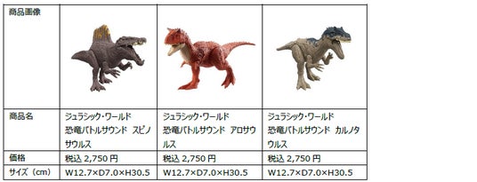 世界大手の玩具メーカー、米国マテル社の日本法人マテル・インターナショナル株式会社(本社:東京都中央区、代表取締役社長:石井恵三)は、「ジュラシック・ワールド バトルアクション!カルノタウルス」や「ジュラシック・ワールド サウンド&リアル インドラプトル」、「ジュラシック・ワールド ダメージ!ひかる アロサウルス」など、「ジュラシック・ワールド」公式ライセンス玩具、18種を3月下旬より発売を開始します。