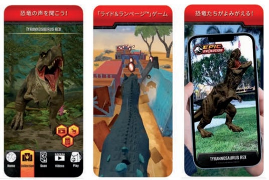 App StoreおよびGoogle Playにて、映画『ジュラシック・ワールド』関連商品と連動する無料連動アプリが「ジュラシック・ワールド・プレイ」としてリニューアルいたしました。本アプリは、各フィギュアに付いているDNAコードをスキャンすることで恐竜をコレクションできます。さらにAR機能により、、スマートフォン越しで見ると、現実世界に恐竜の3Dデータの出現や、「トラック&キャッチ・チャレンジ」などのミニゲームのプレイによって恐竜の知識が楽しく身につけることができます。