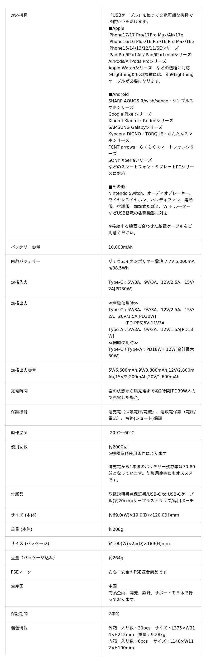 スマートフォンもバッテリー本体への充電も、PD30W急速充電可能でスピーディに充電ができる、小さくてもパワフルな優れものです。