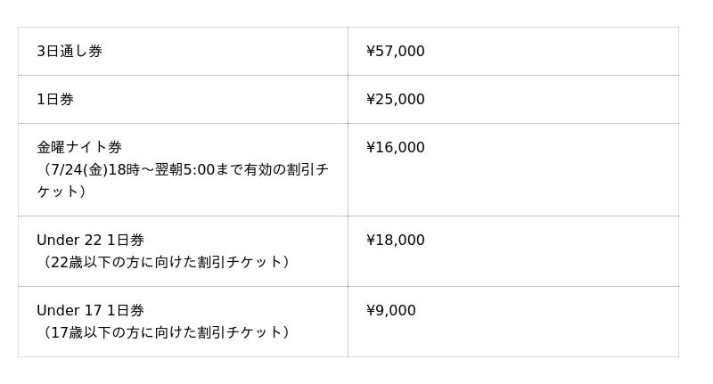 現在入場券は先行特別価格で発売中。フジロックのチケットは早く買うほどリーズナブル!入場券 (先行特別価格)