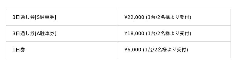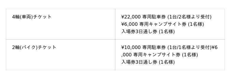 専用駐車券+専用キャンプサイト券+3日通し入場券のセット販売のみ