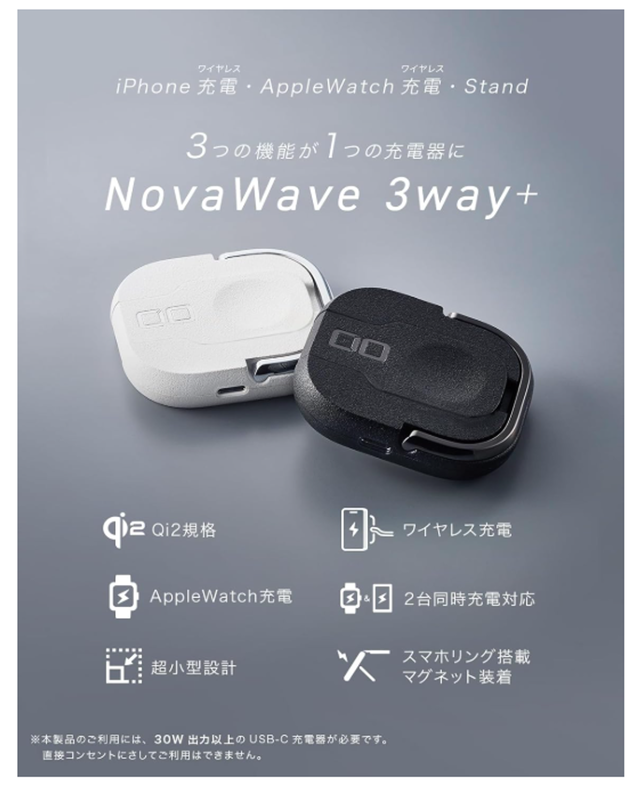 現在、コンパクトながらiPhoneとApple Watchを同時に充電できるなど、1台3役をこなすCIO(シーアイオー)ワイヤレス充電器「NovaWave 3Way+」がお得に登場しています。