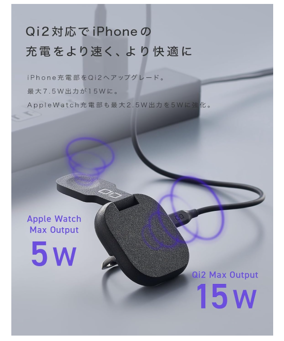 Qi2対応でiPhoneを最大15W高速充電できる