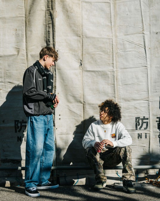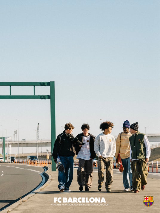 チームウェアを多様なスタイリングで提案することで、フットボールカルチャーを現代のストリートスタイルへと接続するビジュアルとなっています。