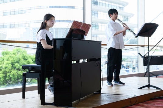 また、中学生プロデューサーのアイデアから、来場者参加型コーナーや、中学生自らが演奏する開演前のロビーパフォーマンスなど、来場者に公演をより楽しんでいただく様々な企画が生まれました。公演の中では中学生プロデューサー自らがステージに立ち、コンサートを盛り上げる場面も。