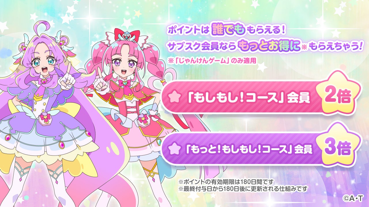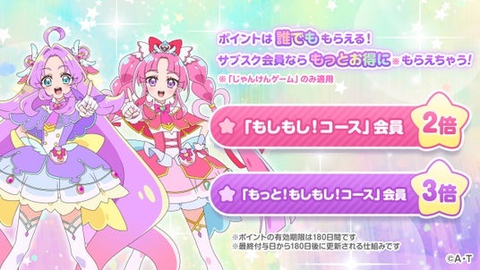 東映アニメーション株式会社(本社:東京都中野区) 、並びにメディアアクティブ株式会社(東京都品川区)は、モバイルアプリ「もしもし!プリキュアでんわ」にポイントシステムを導入したことをお知らせします。