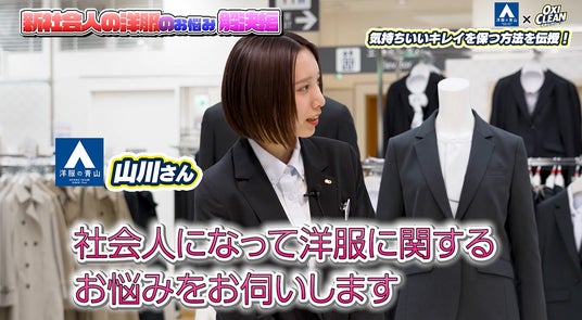 【オキシクリーンの“中の人”と洋服の青山スタッフによる“新社会人の洋服のお悩み解決編”】