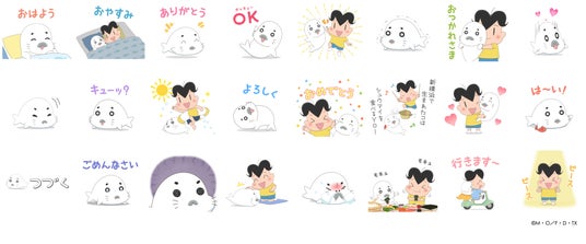 「おはよう」「おやすみ」「ありがとう」などの何万回でも使いたくなるキュートなスタンプです。
