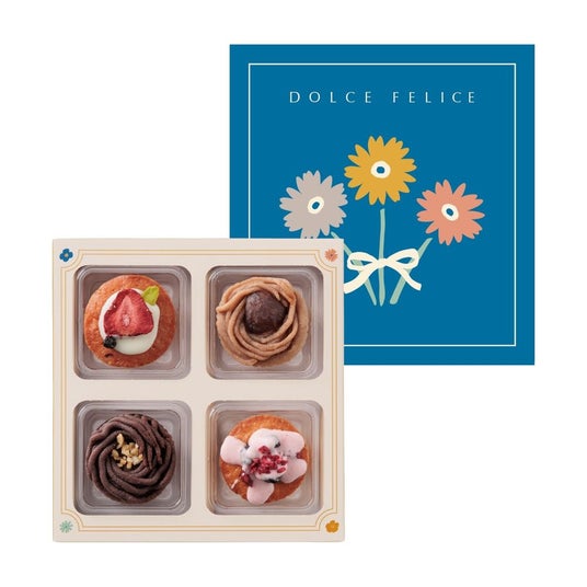 苺やベリーの華やかなパウンドケーキと、ショコラとマロンのモンブランケーキをひと箱に。個性豊かな4つの味わいが、選ぶ楽しさとともに広がる、ドルチェフェリーチェならではのホワイトデーギフトです。パッケージは花言葉に“感謝”や“喜び”の意味をもつガーベラをモチーフに、ホワイトデーという特別な日に大切な人へ「ありがとう」というやさしい想いを届けるのにふさわしい、華やかで温かみのあるデザインに仕上げています。