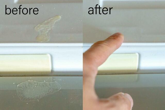 冷蔵庫の棚やコンロ周りの頑固な汚れ。強力な洗剤を使うのはちょっと心配。アルコールは素材を傷めそう。かといって水拭きだけでは物足りない。