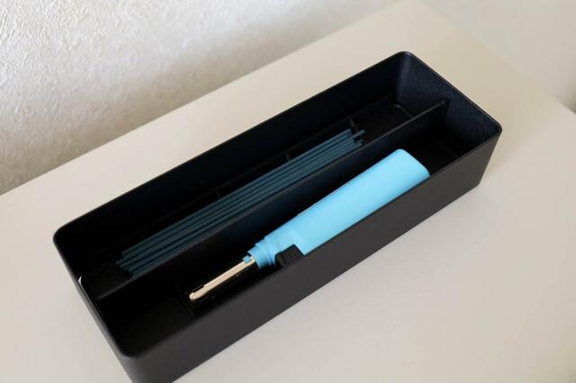わが家では寝室用として、よく使う1〜2種類のお香とライターの定位置に。
