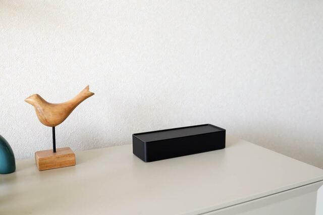 見た目はシンプルな横長のボックス。カラーはホワイトとブラックの2色があり、私はインテリアにあわせてブラックを選びました。