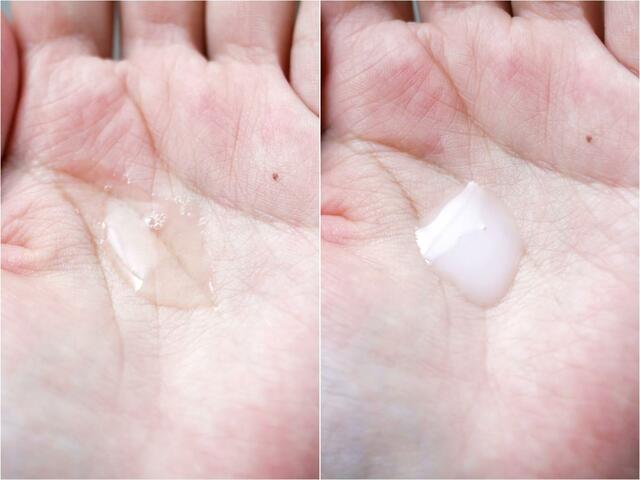 手にとってみると、化粧水/乳液ともに本当にサラサラで、確かにテクスチャが全然違う!