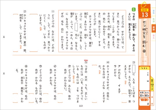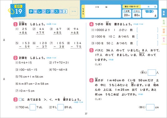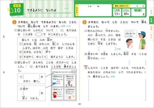 ・国語と算数では、少しレベルの高い「チャレンジ」問題も入っています。