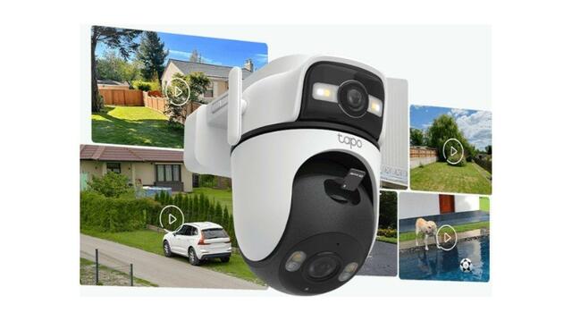 「Tapo C545D」は、一般的な首振りカメラがレンズの向いている方向しか映せないのに比べ、デュアルレンズ(1つの本体に役割が異なる2つのレンズが搭載)によって2方向同時撮影が可能。