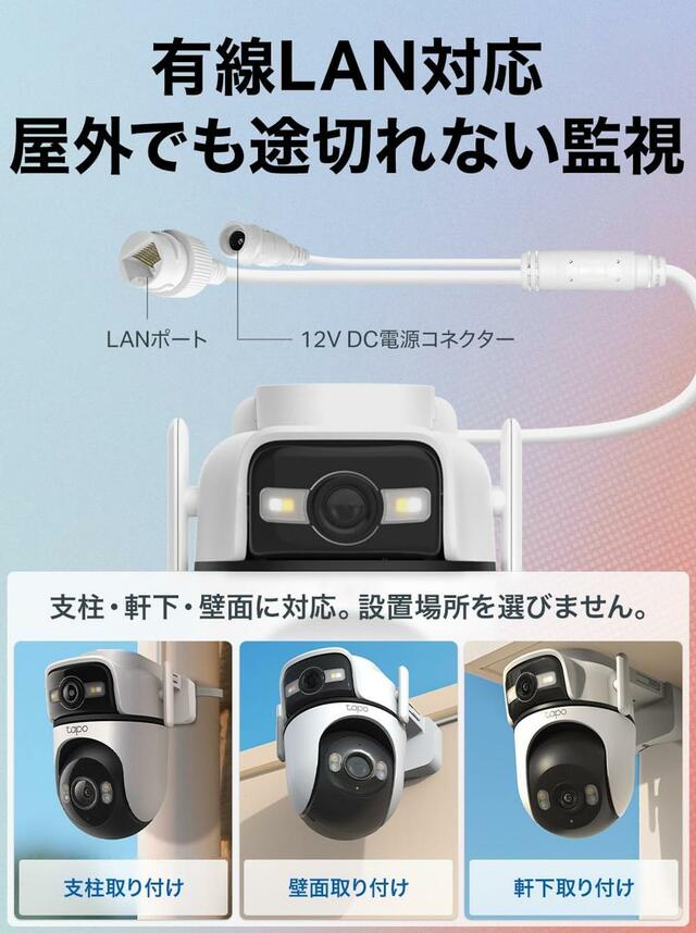 さらに心強いのは、Tapoのデュアルレンズモデルとして初めて有線LANポートが搭載されたこと。