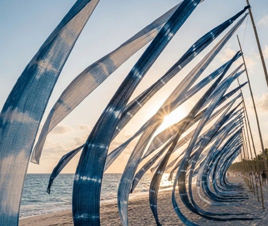 ■潮風にゆらめく「阿波藍染め」アート