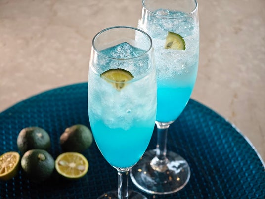 「木頭柚子×すだち×地酒のブルーカクテル」