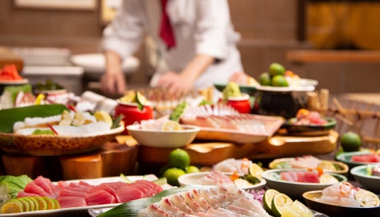 鳴門鯛や阿波野菜ほか渦の幸グルメは、郷土料理バイキング阿波三昧、フレンチ会席、和会席、炭火焼、カフェなど個性的な5つのレストランでご堪能いただけます。