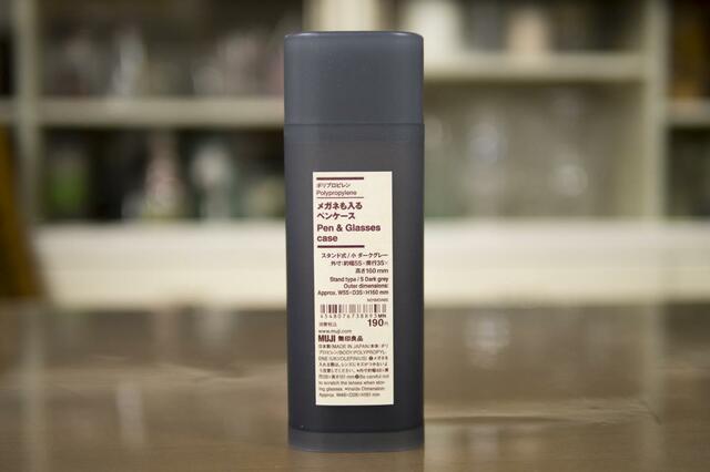 無印良品で見つけた「ポリプロピレン メガネも入るペンケース スタンド式」。
