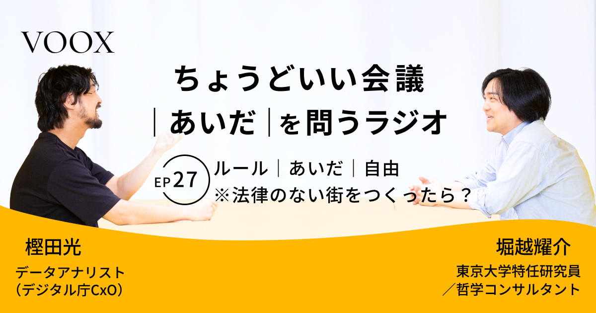 ちょうどいい会議|あいだ|を問うラジオ『Ep27: ルール|あいだ|自由 ※法律のない街をつくったら?』音声教養メディアVOOX/Spotifyにて、配信開始! -