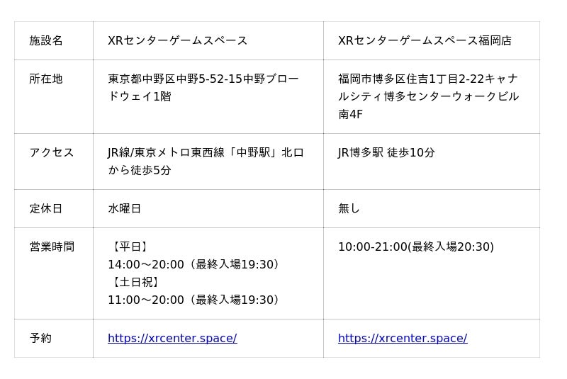 当社直営の常設店「XRセンターゲームスペース福岡店」の最新情報は、当社公式LINEアカウントおよびSNSで随時お知らせいたします。