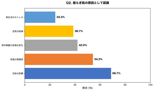 ・揺らぎ肌の原因として「花粉の影響」を挙げた人が68.7%で最多