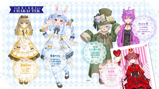 『兎田ぺこらぺこ! フシギの国でどんちゃんを取りもどせ!』中面キャラクター紹介 ※実際の紙面はモノクロです。(c)囚/集英社 (c) COVER