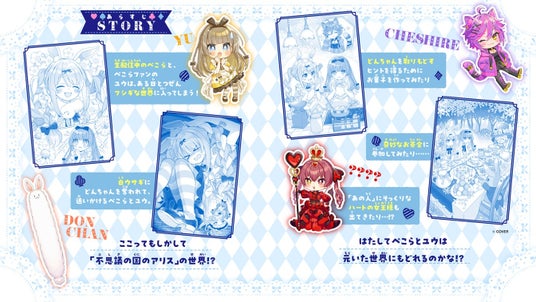 動画の配信中、とつぜんフシギな世界に入ってしまったぺこらと中学生のユウ。白ウサギにどんちゃんを奪われて、体が大きくなったり小さくなったり、奇妙なお茶会に呼ばれたり……これってまるで「不思議の国のアリス」の世界!? ふたりは元いた世界にもどれるのかな? しかも、ハートの女王は「あの人」にそっくりで!? 超人気VTuberの兎田ぺこらが活躍する、大注目のオリジナル小説が登場!