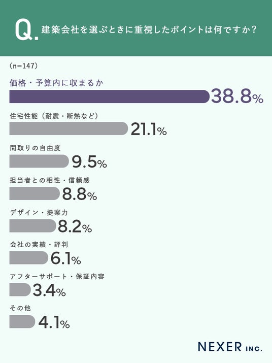 ■38.8%が、建築会社選びで「価格・予算内に収まるか」を重視