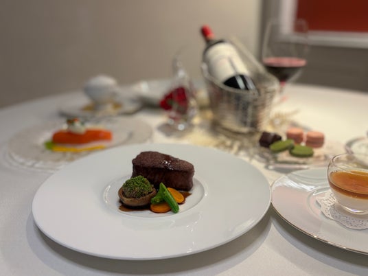 前菜に続き、ハタのポワレ、そして香ばしく焼き上げた牛フィレ肉をご提供。コースの締めくくりには、“白”を象徴するホワイトチョコレートのデザートをご用意しました。甘さを控えた軽やかな仕立てで、最後まで心地よい余韻を残しながらコース全体をやさしくまとめます。