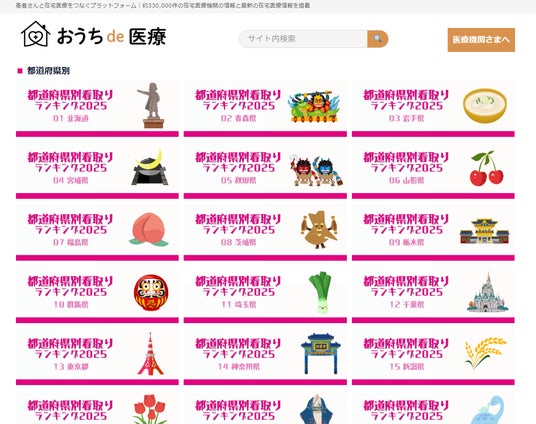 在宅医療情報サイト「おうちde医療」は、全国の在宅看取り件数ランキング2025年版を公開した。