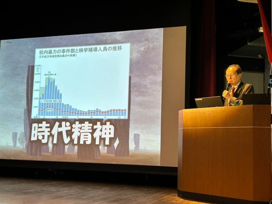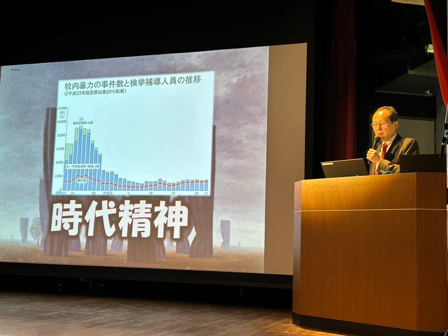 冒頭、筑波大学教授の土井隆義氏が登壇。青少年犯罪や不登校、自殺者数の推移といったデータから、現代の子どもたちが抱える「生きづらさ」の背景を解説しました。 経済状況や大人社会の変化が、子どもたちの意識や対人関係にどう影響しているのか。「10~20年前とは明らかに異なる子どもたちの地殻変動」への考察は、参加者に深い示唆を与えました。