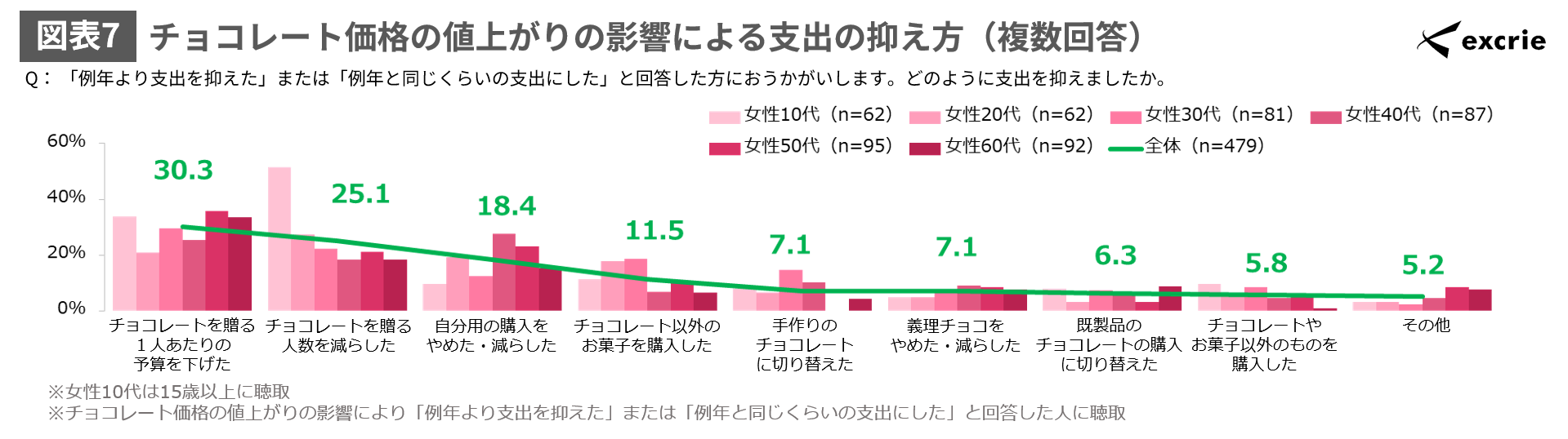 図表7 チョコレート価格の値上がりの影響による支出の抑え方(複数回答)