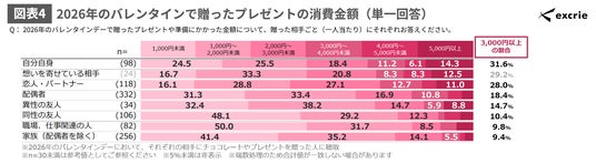 図表4 2026年のバレンタインで贈ったプレゼントの消費金額(単一回答)