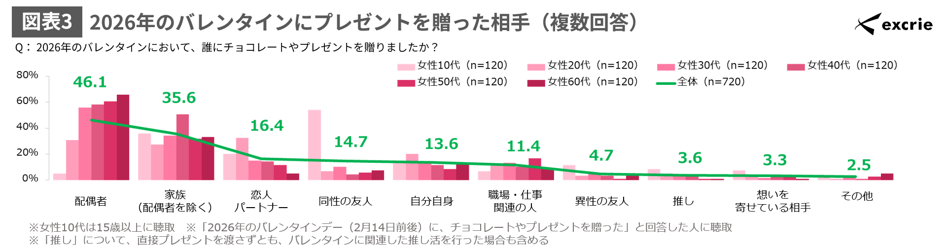図表3 2026年のバレンタインにプレゼントを贈った相手(複数回答)