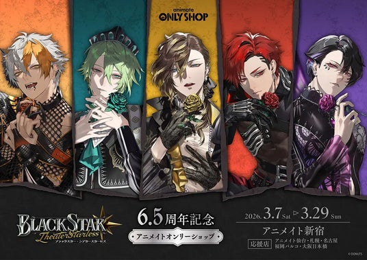 株式会社DONUTS(東京都渋谷区、代表取締役:西村啓成)が運営するスマートフォン向けアプリゲーム『ブラックスター -Theater Starless-』は、アプリ配信開始から6.5周年を迎えることを記念して、ゲーム内キャンペーンおよびアニメイトオンリーショップを開催中です。