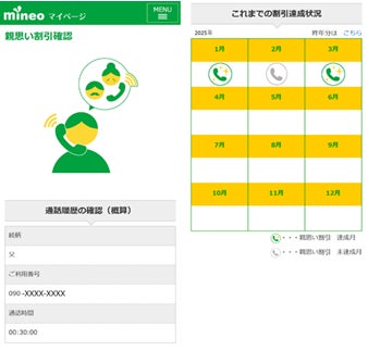 このたび提供を開始する「親思い割引」は、世代やITリテラシーに関わらず、音声通話を通じて親子が会話できる仕組みです。毎月10分の通話をきっかけに、親子の安心やあたたかなつながりを育むとともに、分かりやすい料金メリットを通じて、mineoらしい価値を提供します。