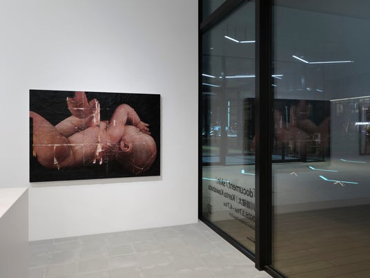 展示タイトル「document / skin」は、皮膚を単なる生体組織としてではなく、経験や外部との接触が蓄積される「記録媒体(ドキュメント)」として捉える姿勢を示している。また、「手」や「パスポート写真」、「幼児」といったモチーフは、皮膚を「触れる・触れられる」や「見る・見られる」という関係が交錯する表面と捉え、コロナ禍以降、反復的に用いてきたものである。これらは、原初的な接触への希求と、社会制度による身体の管理という、皮膚をめぐる二極的な側面を象徴している。