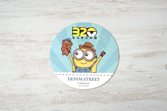 ミニオン ベース in デニムストリートの公式SNSアカウント(x、Instagram)をフォローいただいた方にミニオンの日記念ステッカーを1枚をプレゼント。