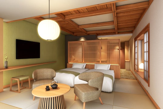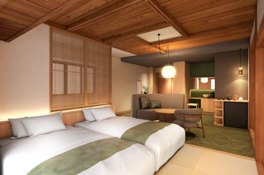 温かみのあるデザインでくつろぎを演出する客室「結(Yui)」(イメージパース図)