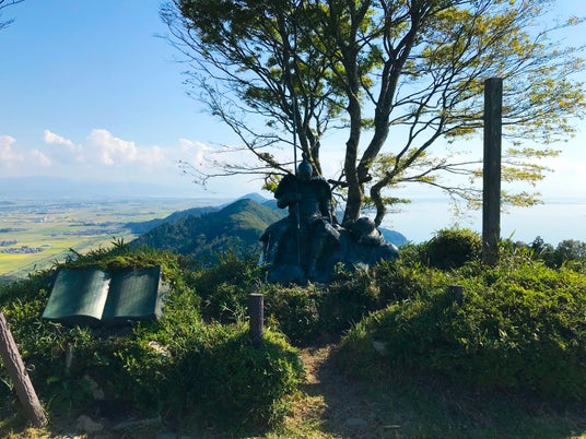 歴史の香りが残る賤ケ岳リフトの山頂エリア。武将像が印象に残る場所。