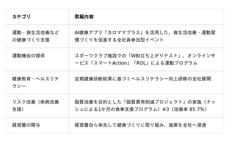 従業員の自発的な健康づくりを支援するため、以下の施策を展開しています。