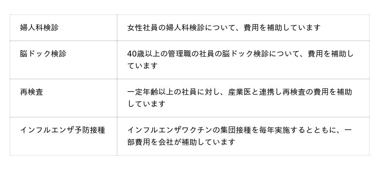 健康管理のための費用補助制度として以下のラインナップを用意しています。