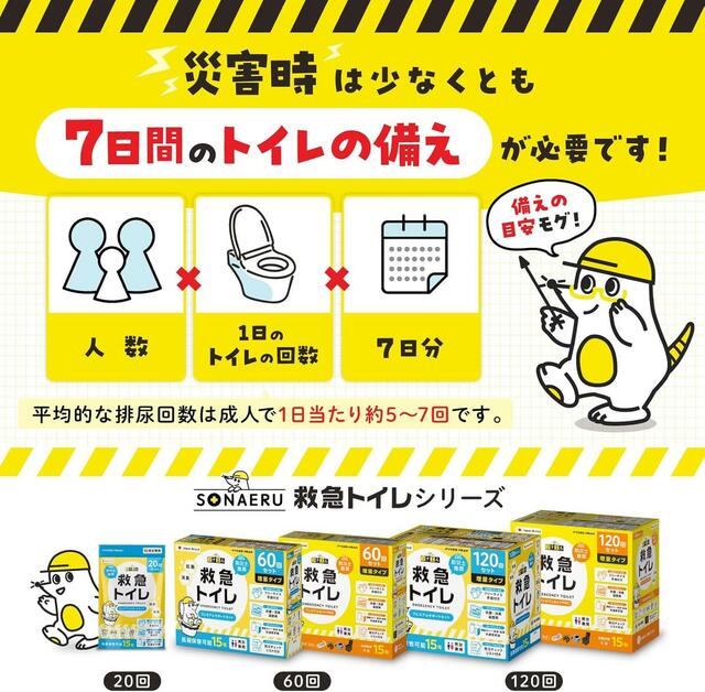 Amazonの商品ページにも記載されていますが、災害時は少なくとも7日間のトイレの備えが必要とのこと。